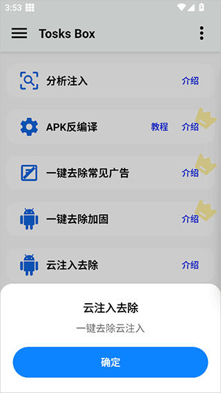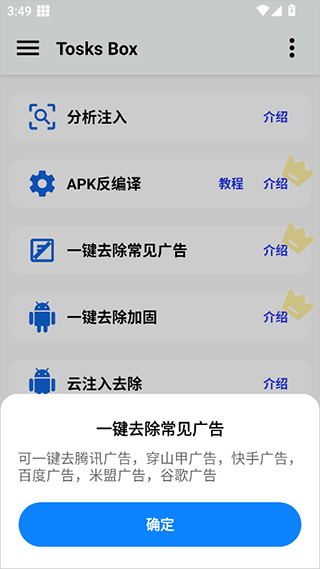 1、该工具不仅支持向APK中注入自定义功能代码,还能有效清除原有开发者预置的冗余或限制性注入内容,比如常见的广告屏蔽、功能解锁等操作,轻松实现纯净化改造。