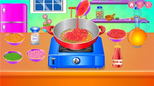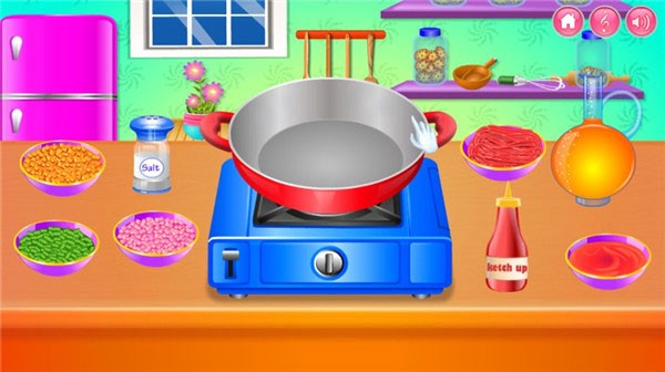 游戏还原真实厨房工作流,包含三大核心操作环节:清洗食材——去除杂质并切配成型;获取厨具——提前摆放刀、锅、砧板等工具,确保动线顺畅;准备调料——盐、酱油、醋、油等常用调味品就近取用,提升制作效率。每一步都兼顾趣味性与合理性,让烹饪过程更沉浸、更有成就感。