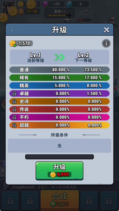 7、随着角色等级提升,装备品质也将逐阶进化,但升级过程依赖大量金币支撑。金币贯穿合成、招募、强化、皮肤解锁等全部环节,务必精打细算,建立可持续的资源循环。