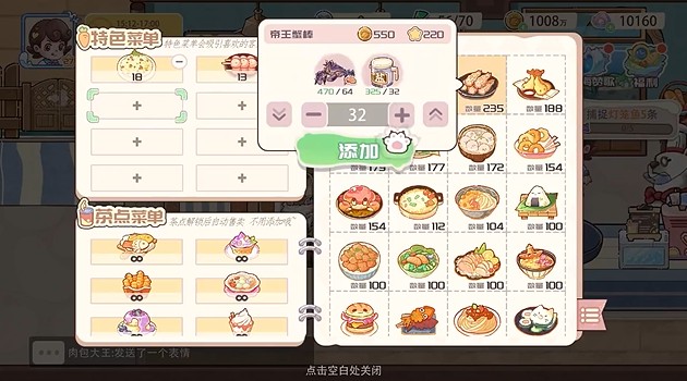 2、前期优先解锁高频出品的基础菜品,保障稳定客流与资金回流;中后期聚焦稀有食材开发高端料理,打造高评分招牌菜,持续拉升餐厅口碑与收益;
