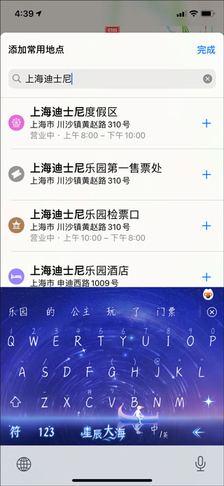 2、在搜索框中输入目标地点名称,例如“上海迪士尼”;