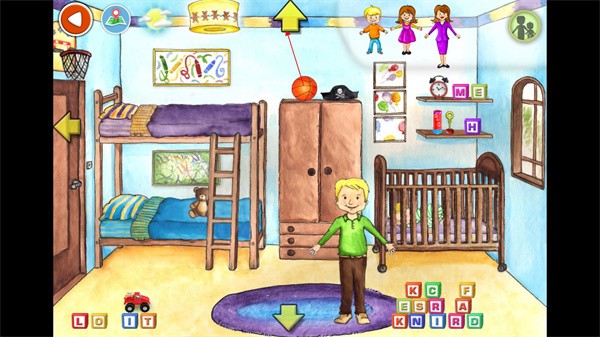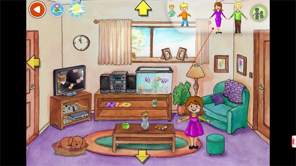 4、通过界面左右上下箭头自由切换场景,例如点击左侧箭头即可从卧室进入客厅,探索更多生活空间。