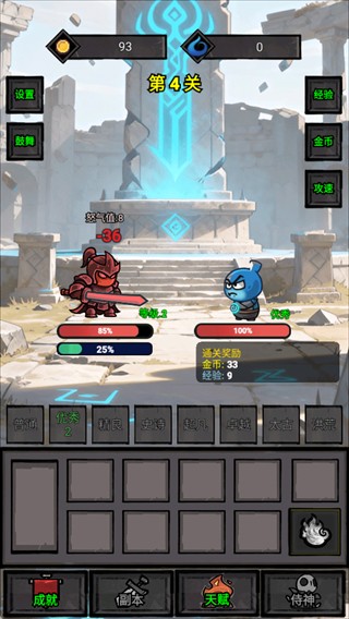 玩家可挑战无尽延伸的关卡体系,收益随进度持续递增,并支持离线挂机机制,即使不在线也能稳定积累金币、经验等关键资源。
