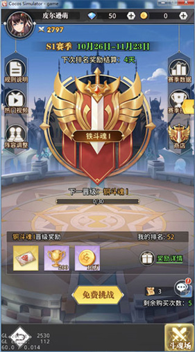 2、玩法介绍:通过随机匹配玩家进行战斗,提升斗魂积分,根据斗魂积分进行排名。