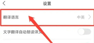 2、在设置菜单中找到并点击「翻译语言」选项。