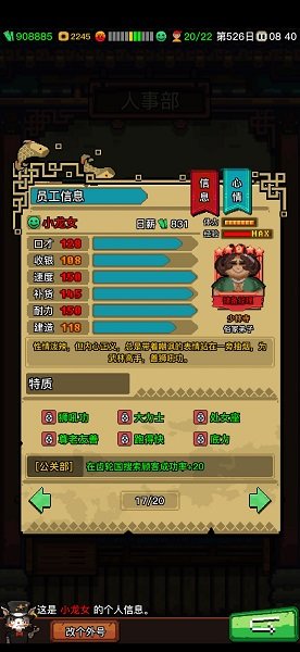 人才市场不仅是招募地,更是小游戏考场——操作反应、判断力、甚至手速都会影响最终录用品质。