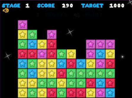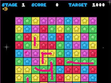 2、点击任意两个及以上相连的同色星星,即可完成消除。