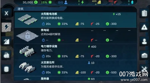 在充满未来感的科幻城市框架下,亲手打造功能完备的太空基地:建造采矿站获取基础矿物,设立精炼厂转化原材料,搭建仓库保障物资储备,部署生命维持系统为工人持续供应水、食物与氧气。
