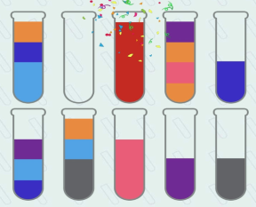 这是一款画风清新、色彩明快的卡通风格益智游戏,以科学实验为灵感,巧妙融合色彩认知与逻辑推理。游戏中提供多种实用道具,助力玩家突破卡点;关卡设计循序渐进,从入门到高阶层层铺开,不同颜色组合与试管容量限制持续带来新鲜感与策略深度。