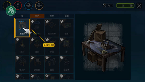 1、打开工艺菜单,选择「渔网」配方并确认制作;