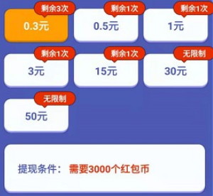 首笔红包需通关5关,第二笔需通关15关,第三笔需通关30关。