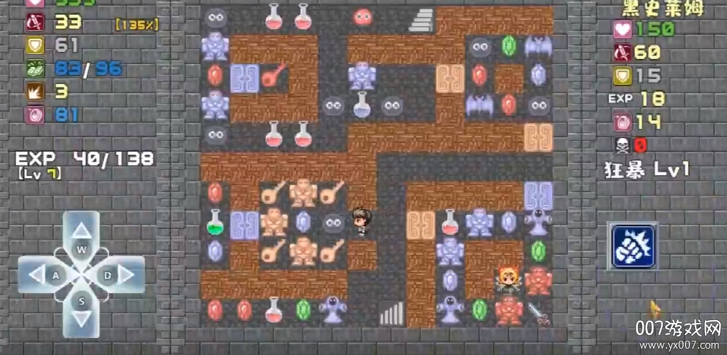 操作极简,策略至上:仅通过方向键移动角色,遇敌自动进入回合制战斗,让所有注意力回归数值判断与战术选择。
