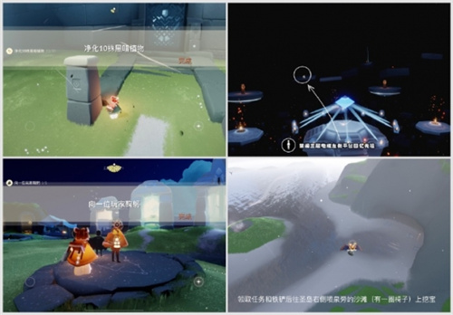 ④帮助先祖在云野寻找宝藏:接取任务后领取铁铲,前往圣岛右侧喷泉旁的环形沙滩(周围摆放一圈石椅),在沙地上挖掘即可。