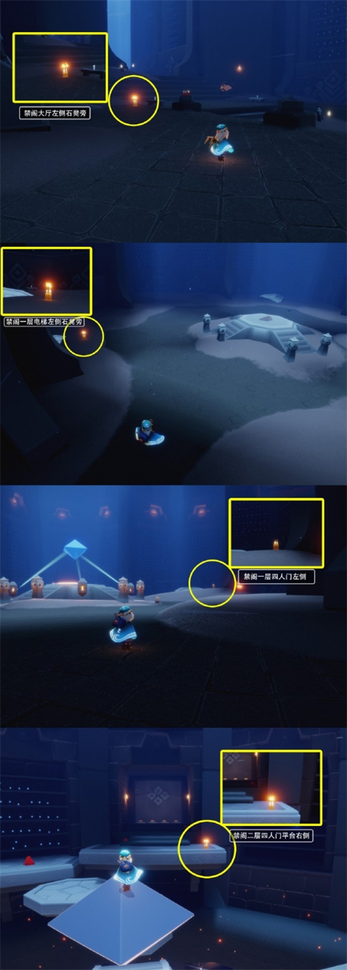 ②在禁阁重温先祖的美好回忆:前往禁阁三层,乘电梯后左转至浮台区域,靠近发光石碑触发回忆动画。