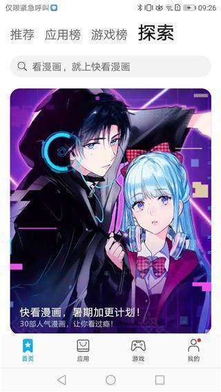 1、安装并启动华为应用市场鸿蒙版v14.3.1.300后,进入首页即可直观查看四大核心模块:【推荐】、【应用榜】、【排行榜】与【探索】,内容智能轮播,发现效率大幅提升。