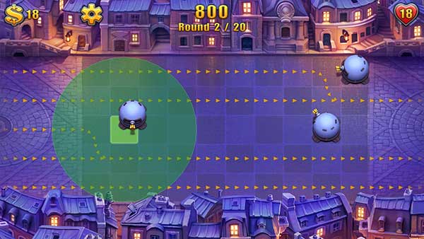 17、加农炮塔:弹道反弹机制,炮弹接触目标后弹射二次伤害,1级单发100点,3级达300点,有效射程1.5~3.5格。