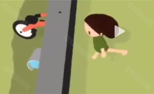 1. 将橙色自行车与小水桶卡在墙边作为垫脚工具;