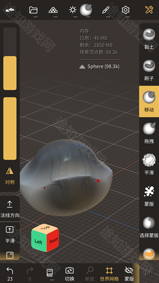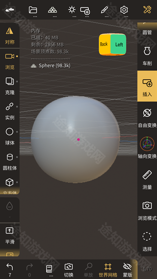 1、旋转视图:单指(或Apple Pencil)在背景空白区域拖动即可自由旋转视角;若手指触达模型表面,则自动触发雕刻操作。