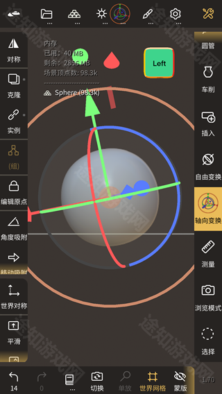 7、旋转模式切换:默认轨道旋转(两自由度,操作直观);切换至轨迹球模式后,支持三自由度全向旋转,大幅提升复杂角度下的建模自由度。
