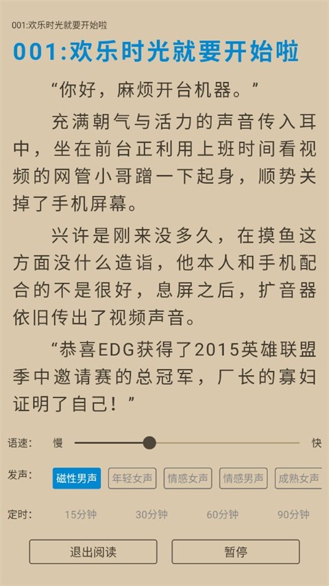 3、组件就绪后,即可开启语音朗读,并在设置中调节语速、音色、背景音等参数,定制专属听书体验。
