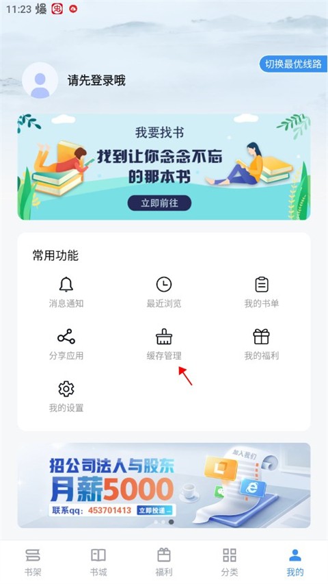 4、返回主界面,进入“我的”→“缓存管理”,统一查看与管理已缓存书籍。