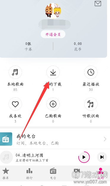 3、在【我的】页面中,选择【我的下载】,查看所有已缓存歌曲。
