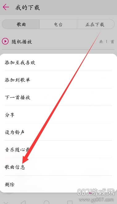 5、在弹出菜单中选择【歌曲信息】,进入详情页。