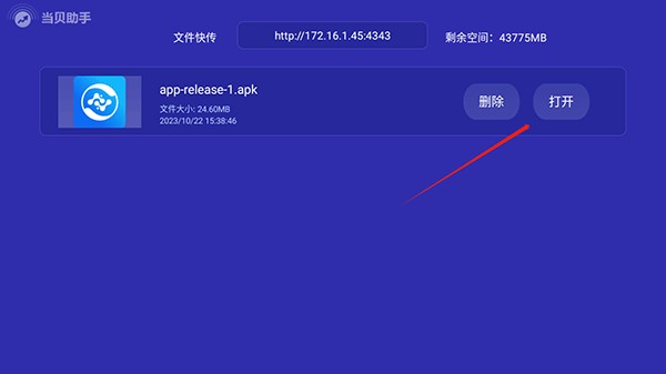 4、上传成功后,文件将自动同步至当贝助手【已上传】列表,返回主界面点击对应APK即可一键安装,告别U盘与ADB调试。