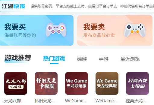 我要买:支持手游与端游双线选购,热门品类覆盖全面,包括《天龙八部怀旧服》《经典天龙卡级服》《天龙八部经典服》等高人气服务器账号,价格透明、状态实时、支持视频验号,所见即所得。