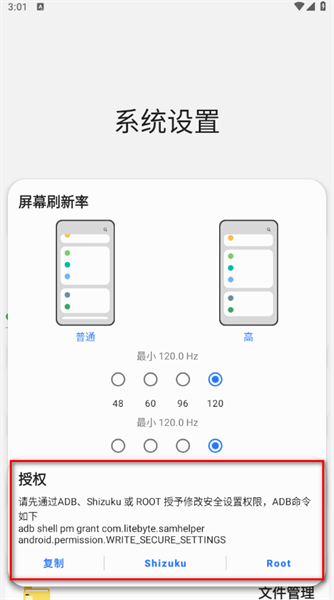 以屏幕刷新率调节为例(需ADB或Root权限):