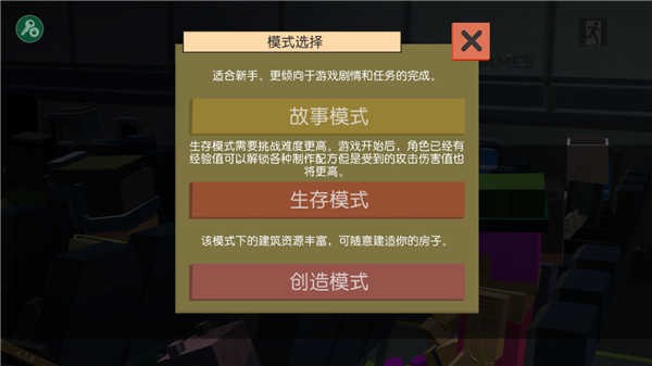 2、在故事、生存、创造三大模式中自由选择,体验风格迥异的挑战路径。