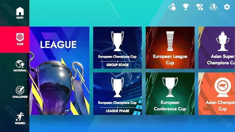 进入游戏后,首先选择你希望征战的职业联赛——五大联赛、南美解放者杯或亚洲冠军联赛,任你挑选。