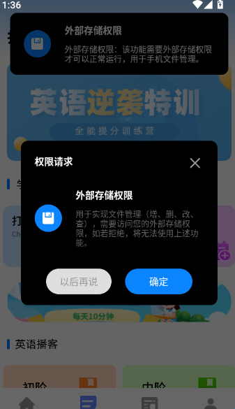 4、首次使用时将弹出存储权限请求,点击“确定”以启用本地笔记保存功能