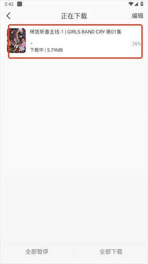 3、进入下载列表页面,可查看缓存状态、暂停/继续任务,或删除已缓存内容以释放空间。