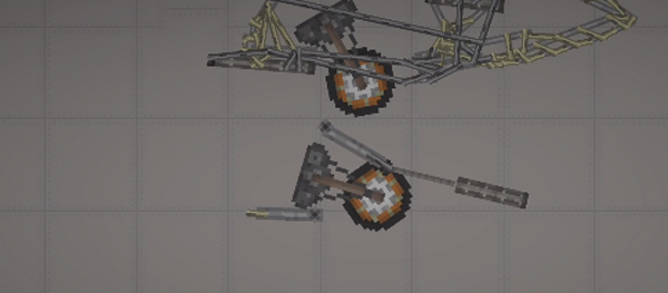 1、构建基础起落架结构:使用轮胎与引擎连接铁块组成前起落架,相同结构可复用于后起落架,确保支撑稳定性;