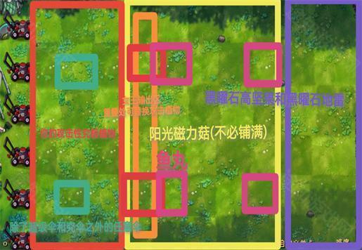 最好在第八列的两个鱼丸完成时种植阳光磁力菇,确保两个鱼丸血量接近,接着再种植第五列的鱼丸,鱼丸的血量不能低于8000,第一回合应该就能养出几万血的鱼丸