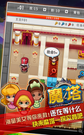 为了到达公主被俘的塔顶,你需要的不仅仅是力量~魔塔免谷歌版是一款包含至少50个楼层的经典像素风RPG游戏:收集钥匙开启下层之门、破解机关谜题、击败层层守卫的怪物,在丰富细腻的像素世界中策略闯关、步步为营!
