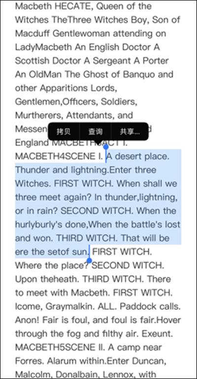 5. 点击弹出菜单中的“共享”→ 在共享列表中选择“翻译”,APP将自动跳转并加载原文,您只需设定目标语言,即可获得清晰排版的双语对照结果。