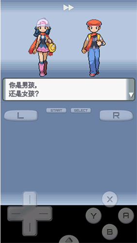 点击触摸屏上的精灵球,选择主角性别(男或女),未选角色将成为你的劲敌对手。