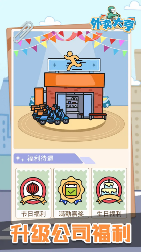2. 完成订单可获得收入与经验值,用于升级设备、扩展业务规模,打造专属外卖帝国。