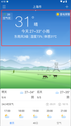 2. 24小时逐时预报清晰明了,便于提前做好防寒、防雨等准备。