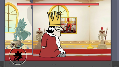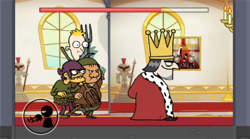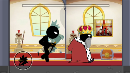 第二关:先点击左侧按钮使国王下移,再迅速靠近将其刺杀。