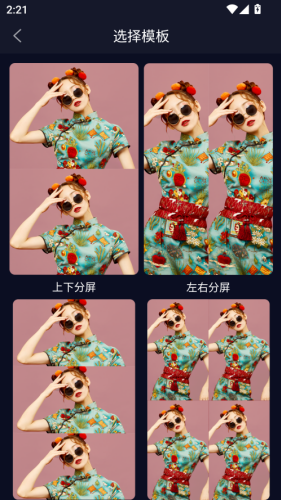 3. 使用“多格视频”模板,只需上传多个片段,系统自动排版合成,轻松实现分屏、画中画等高级效果。