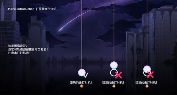 4、一旦成功命中雨丝音符,即使手指滑离原位置,只要未松开,就不会触发miss判定。