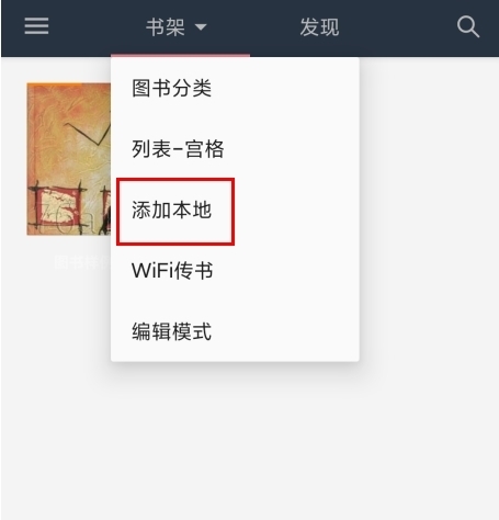 1、进入首页“书架”页面,点击右上角“添加本地”按钮;