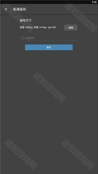 2、在画布设置界面,输入所需宽度、高度及DPI,确认后点击“制作”即可生成新画布。