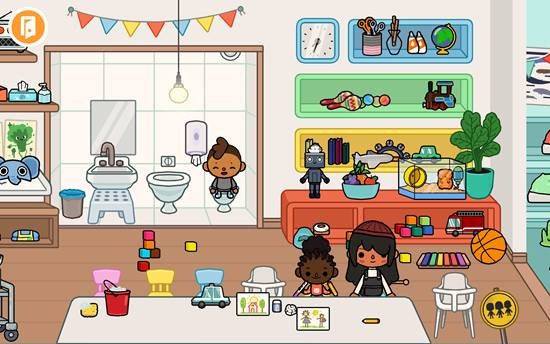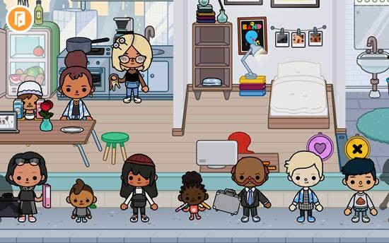 点击左上角的“退出房间”按钮,即可返回街道并前往其他地点,比如自己的家。家中同样充满互动元素,有多个孩子和各类小物件。