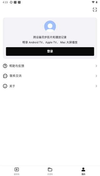 首次打开应用时,影视库为空,可点击“资源库”开始添加内容。