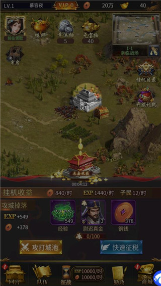 在世界地图中选择一个城池可以攻打他获得丰富的奖励
