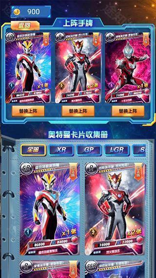 3、海量卡牌自由收集:涵盖众多经典奥特曼与怪兽角色,每张卡牌均拥有独立属性、技能与等级体系,策略搭配空间广阔。